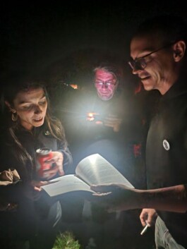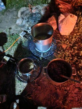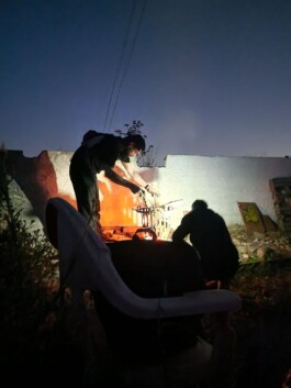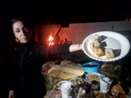 After the uphill hike, we gather in the caves to talk about Buenaventura Durruti, anecdotes from his life and read from his diary as a recipe book. We also learned about the history of the elaboration of the book The Cook of Durruti by comrade Fran, who participated in the first edition in Spanish and the woman who wrote it, Nadine, who wrote her memories of the civil war and the Spanish revolution.