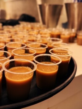 simple white russian shots (fermented coffee liqueur, vodka, vegan milk)