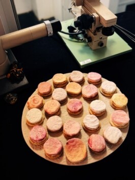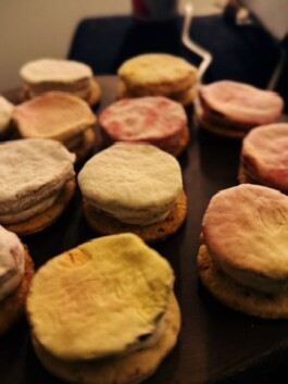 crackerstyle sablé, cream with torshi makhloot (mixed persian pickles), degusta lago olive oil, koji fermented red beet discs